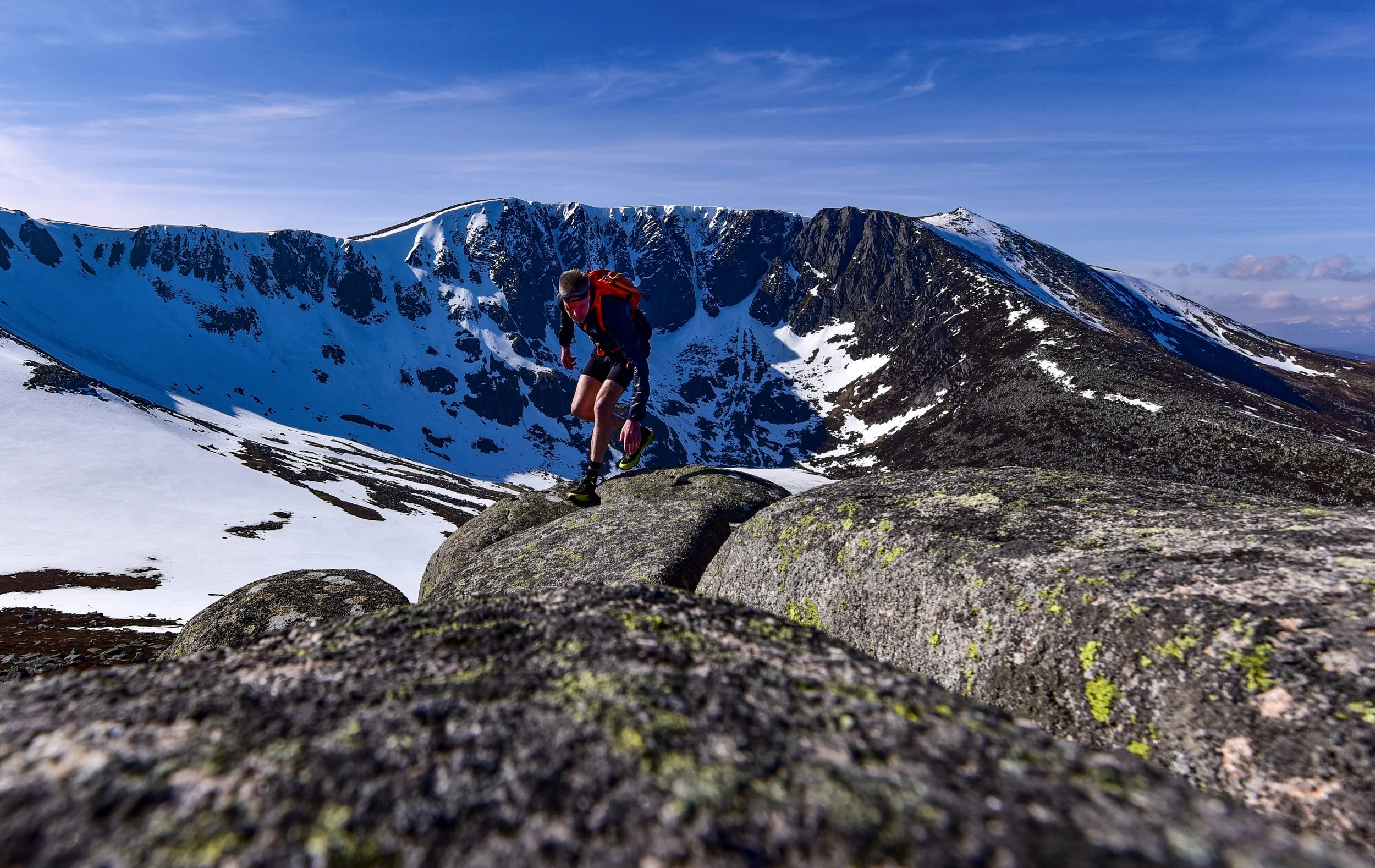 A minor classic, the round of Lochnagar and the White Mounth, more often referred to simply as ‘The Circuit’, offers the runner that peculiar combination of high summits and remarkably easy ground so characteristic of the Cairngorms. Which is not to say that more difficult, technical running does not exist, nor that a few boulder fields will not have to be crossed. But in general, the going is good, and fast — unless attempted on day when a rapid thaw is in progress and the hard névé of weeks gone by is consigned to memory.