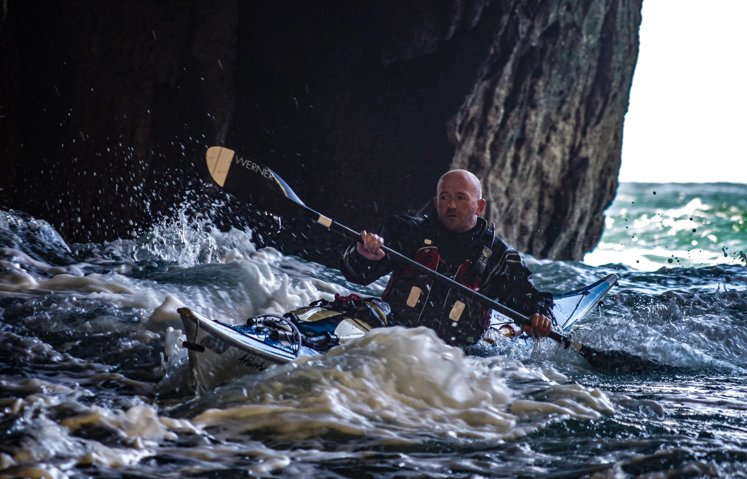 Fast tidal streams, big cliffs and a few caves make the trip around The Stacks a good one on any day, with the obvious caveat that this depends how lumpy you like your kayaking to be. We generally favoured ‘lumpy - but not too lumpy’. This was one of those days.